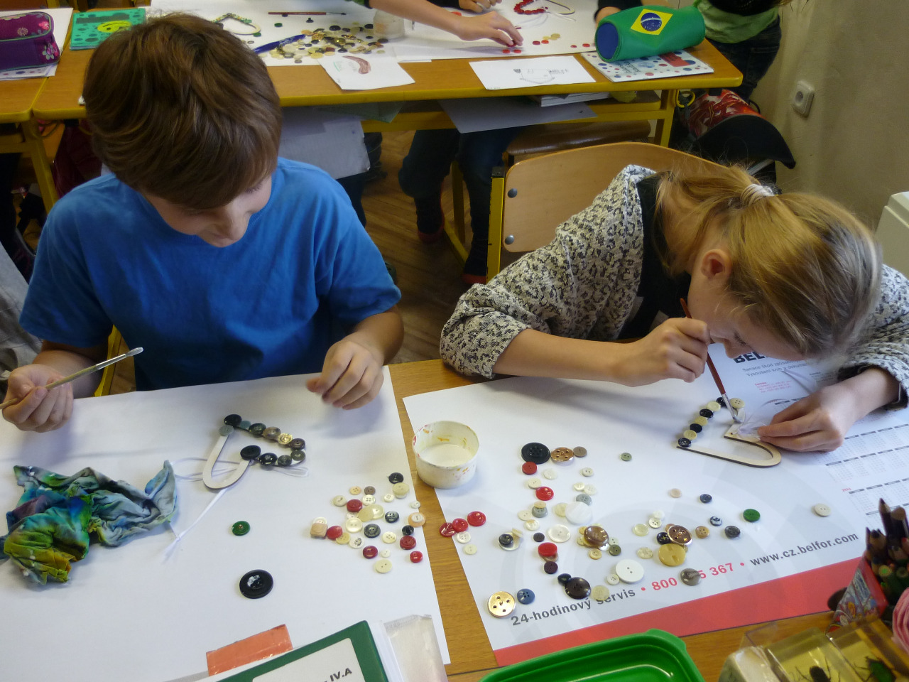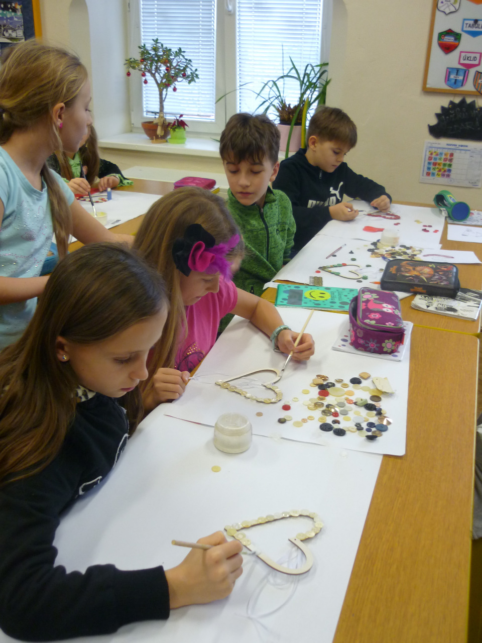 (Děkujeme Eviččině mamince za podkladová srdíčka a Natálčině za množství nádherných knoflíků.)