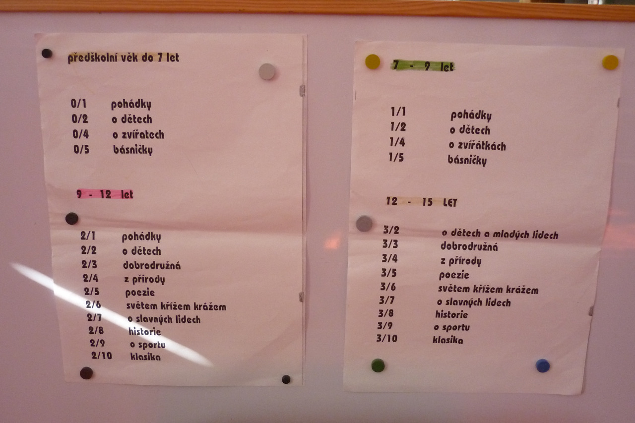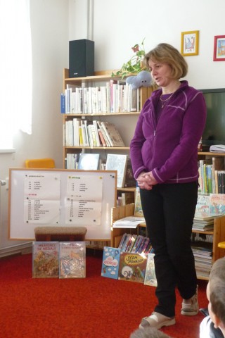 Na místě nás čekala paní knihovnice a vysvětlila nám chod knihovny, systém rozlišení knih pro děti a dospělé a hlavně jsme se seznámili s dalšími knihami Ondřeje Sekory.