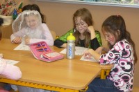 Další hodinu se procvičovalo čtení, do třídy přišla návštěva z vyšších sfér, totiž páťáci, kteří nám představili kolekci klobouků pro nadcházející sezónu. Potom si děti pochutnaly na ovocných salátech. Ty vám byly! Mňam!