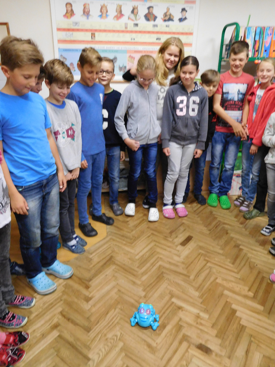 Přihopsala k nám cvičená žába. Hrála a metala salta...