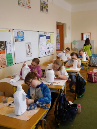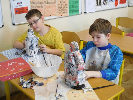 Noviny, tapetové lepidlo, lahev od aviváže...