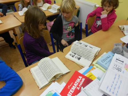 Od paní Chlebkové jsme dostali vyřazené knihy, za které moc děkujeme. Použili jsme vánoční papír, jehličí, lamety, ozdoby, oříšky......